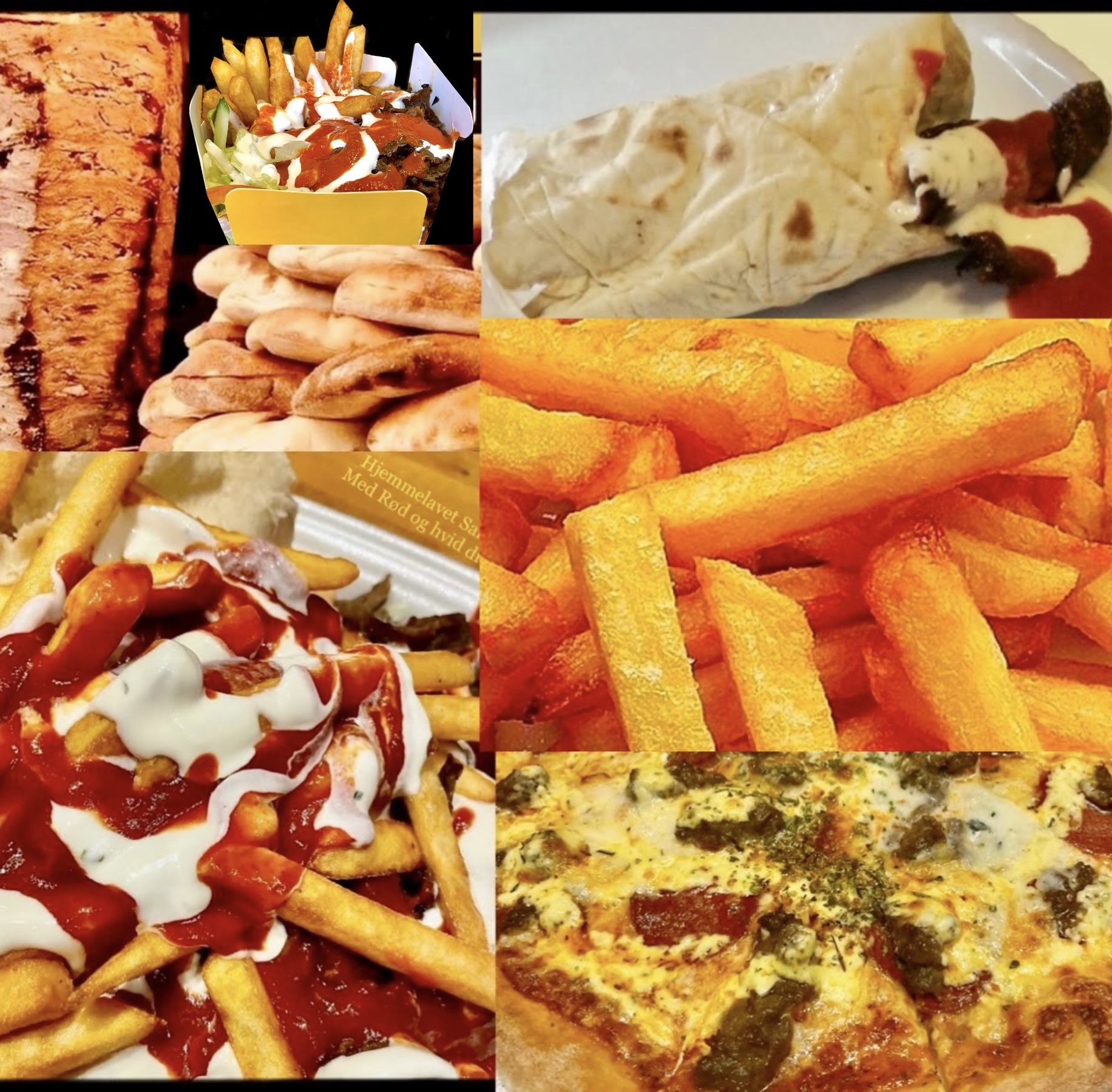 Med Tomat, Ost, Kødsauce, Champignon og Cocktail pølser
